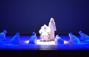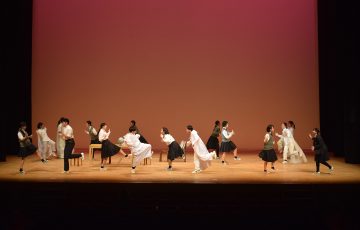今年度上演した作品は、甲斐清和高等学校演劇部作の創作劇「あとらす」。高校の部活の場面、女子高生たちの会話の場面、宗教的な場面に分かれており、登場人物たちそれぞれの「好き」なことに向かう姿勢や葛藤を描いています。それぞれの場面は終盤にいくにつれてつながっていくことで1つのストーリーとなっています。