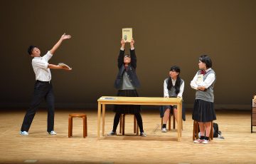 12日の本番では、練習以上の演技や演出をすることができたように思います。登場人物たちの個性的なセリフやコミカルな動きに会場からは笑いが起き、また、ダンスのシーンでは自然と会場から手拍子が起こるなど、観客の皆さんと一体となったような舞台になりました。地区大会から台本を変更した点についても、概ね高評価を頂きました。