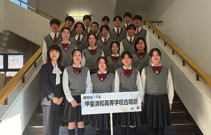 合唱部、山梨県ヴォーカルアンサンブルコンテストで金賞! クラブ活動2026.02.01 2月1日(日)、「第27回山梨県ヴォーカルアンサンブルコンテスト」が甲州市民文化会館(甲州市)で開かれました。 本校からも合唱部が出場、金賞(第1位/高校16団体)を受賞しました。 その結果、3月14日(土)に静岡市清水文化会館(静岡県静岡市)で開かれる「第15回関東ヴォーカルアンサンブルコンテスト」への出場が決定しました。 引き続き、温かい応援をよろしくお願いします。