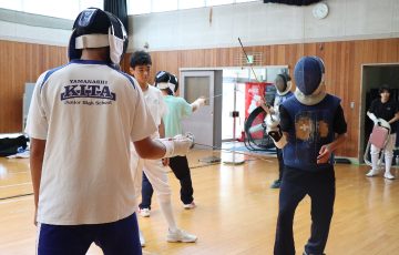 また、運動部の体験入部も行われ、体育館ではバドミントン部とフェンシング部、里吉グラウンドではソフトボール部とソフトテニス部、上町グラウンドでは女子硬式野球部とサッカー部がそれぞれ高校の部活動を体験しました。