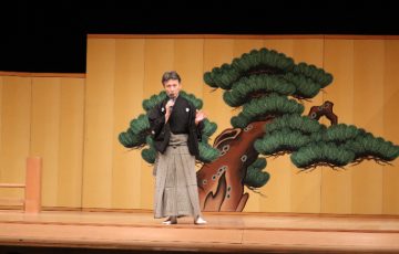今年は重要無形文化財保持者である三宅右近さんを中心とした和泉流狂言会である「三宅狂言会」さんを招いて、笑いの世界無形文化遺産である狂言を鑑賞しました。