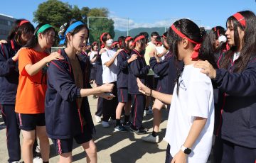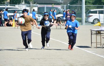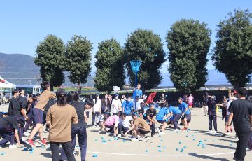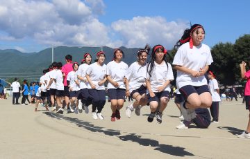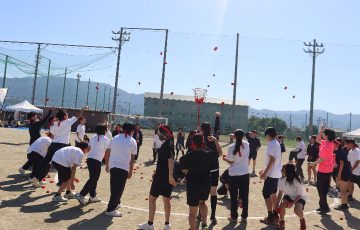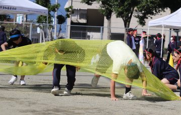 学年対抗戦で競う体育祭。午前中は、クラスで力を合わせる競技を行いました。