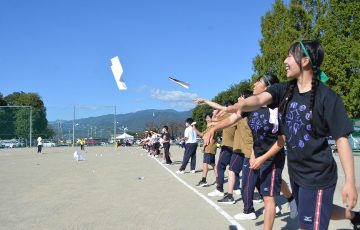 工夫して作成した自作の愛機で飛距離を競う「紙飛行機飛ばし」