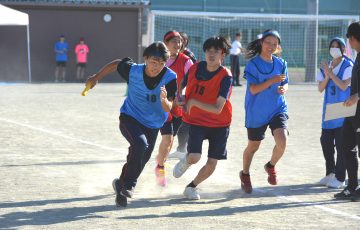最後は学年対抗リレー。50mのタイムで選ばれた学年選抜が、トラックを駆け抜けました!