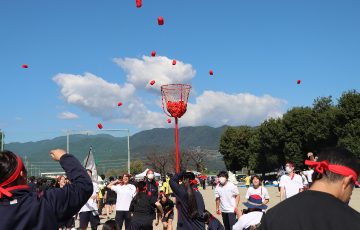 玉入れは、学年ごとに設けられたかごに、一生懸命玉を投げ入れていました。
