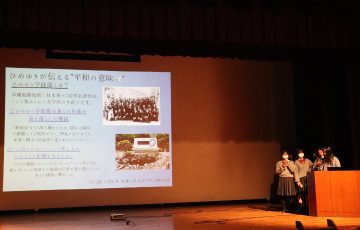 生徒たちは2学期期間をかけて、「総合的な探究の時間」の授業の中で修学旅行の事前学習に取り組んできました。グループごとに自由にテーマを設定し、インターネットなどを用いた文献調査を進めてきました。11月末には、まずクラス単位で発表会を行い、その中でも特に内容や工夫が優れていたグループが、クラス代表として全体発表に登壇しました。