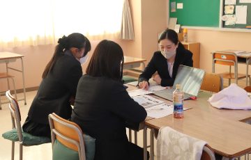 進学希望の生徒たちは、県内外から来校いただいた20校を超える大学・短期大学・専門学校の先生方から50分ずつ、合わせて2校の説明を受けました。1つひとつの学校の担当者の方から、学部・学科の特徴や取得可能な資格、求められる人物像をはじめとした各校の特徴についての説明を熱心に聞いていました。