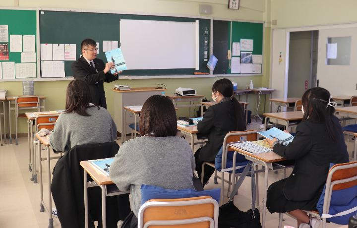 一方、就職希望の生徒たちは視聴覚室に集まり、具体的な仕事の内容ややりがい、業界の特徴などについての説明を受けました。