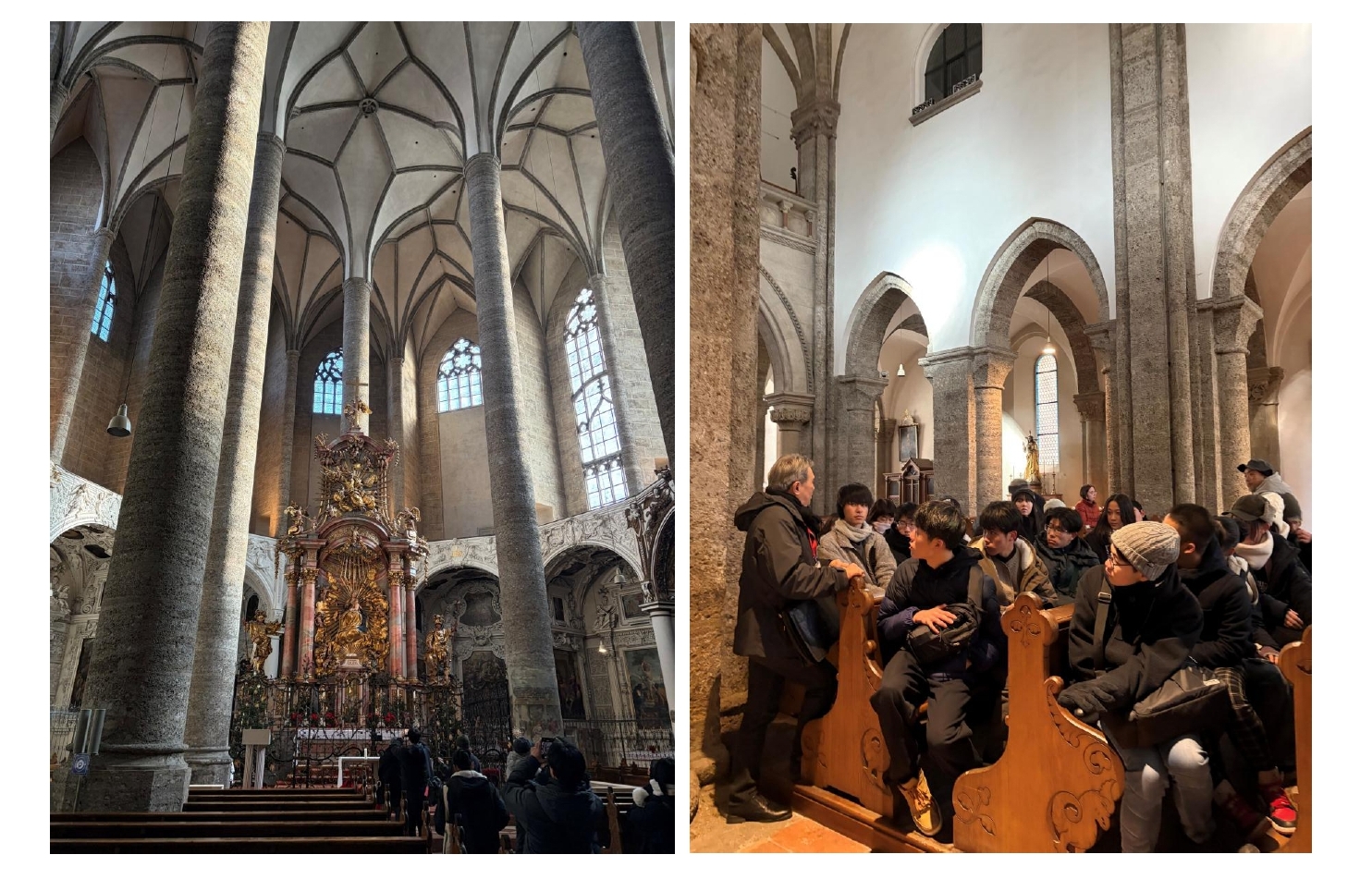 音楽科1・2年生がヨーロッパ修学旅行に出発しました。 学校行事2026.01.18 11月17日(土)、音楽科1、2年生がオーストリアを巡る、5泊7日の修学旅行へと出発しました! 初日は午前5時00分に学校を出発。 まずは羽田空港からミュンヘン空港を経由して、ザルツブルグへ。合計16時間強におよぶ長いフライトでした。 2日目となる18日(日)は、オーストリア公認ガイドの豊島さんの案内でザルツブルグ市内を巡りました。 ↑ 祝祭劇場、サンクペーター教会、ザルツブルグ大聖堂などを見学しました。 19日(月)にはウィーンに向かいます!