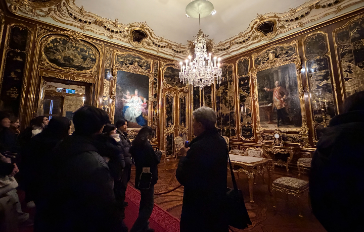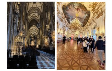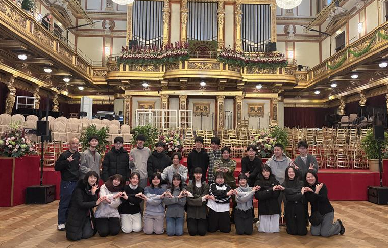 最初にウィーン学友協会に行きました。世界で反響のいいホールのトップ3に入ると言われる、黄金のホールの輝きに生徒たちも感激していました。