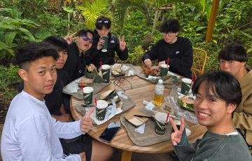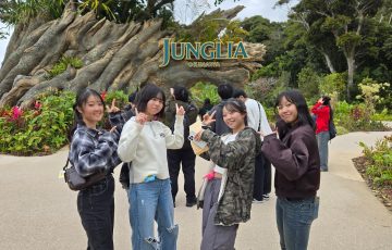 園内に入ると、生徒たちは友だちと連れ立って恐竜サファリや森の散策を楽しみながら、笑顔と歓声に包まれた時間を過ごしました。人気のアトラクションでは会話も弾み、自然の中で体を動かす楽しさを仲間と共有していました。昼食には沖縄の食材を味わい、限られた時間ではありましたが、充実した体験を重ね、心に残るひとときとなりました。