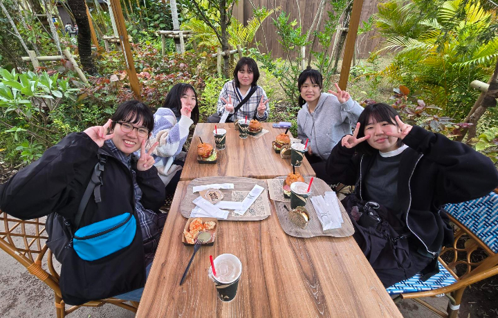 園内に入ると、生徒たちは友だちと連れ立って恐竜サファリや森の散策を楽しみながら、笑顔と歓声に包まれた時間を過ごしました。人気のアトラクションでは会話も弾み、自然の中で体を動かす楽しさを仲間と共有していました。昼食には沖縄の食材を味わい、限られた時間ではありましたが、充実した体験を重ね、心に残るひとときとなりました。